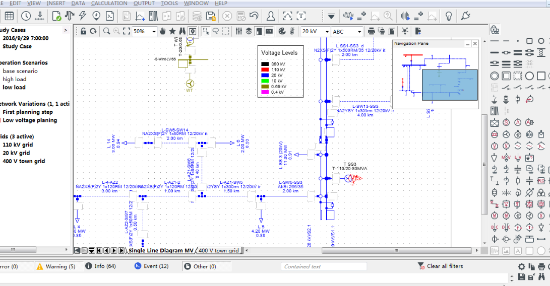 在进行短路计算前,确保已有的电力网络模型(如输电线路、母线、发电机、负载、变压器等)已经配置完成,并输入了必要的阻抗、额定电压、电流等关键电气参数。PowerFactory提供模型完整性检查工具,可一键验证数据完整性,避免运行时错误。